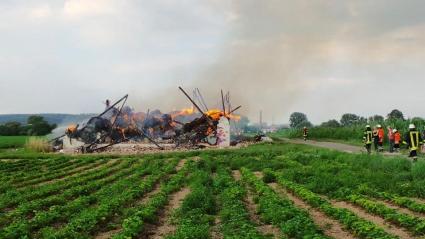 Hameln (ots) - (Hameln) Am Mittwoch, 22.07.2015, gegen 17.35 Uhr, wurde über Notruf der Brand einer Scheune an der Bundesstraße 83 (Hameln-Emmerthal) auf Höhe des Ortsteils Klein Berkel gemeldet. Bei Eintreffen der alarmierten Feuerwehren stand die einzelstehende Scheune, in der Stroh und landwirtschaftliche Geräte gelagert waren, in Vollbrand.