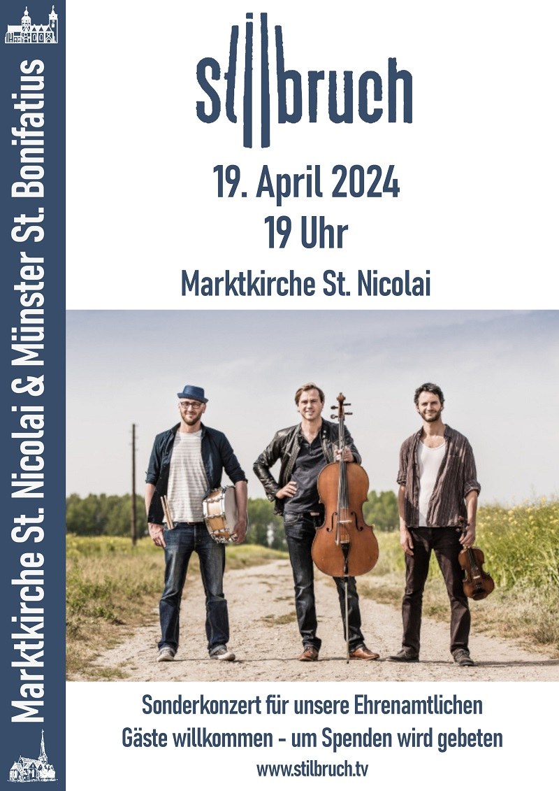 Sonderkonzert mit der Klassik-Pop-Band "Stilbruch" aus Leipzig am 19. April um 19 Uhr in der Marktkirche St. Nicolai