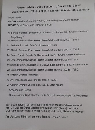 Musik und Wort am 24. Juli um 18.15 Uhr im Münster St. Bonifatius, Hameln UPDATE