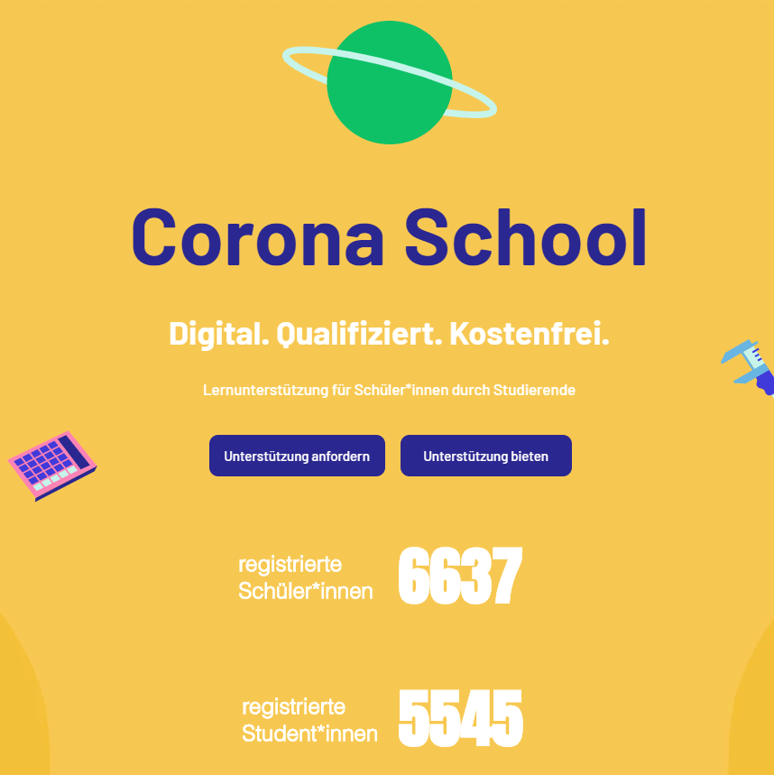 Um Eltern und Schüler*innen während der Corona-Krise zu entlasten und für eine sichere wie zuverlässige Lernatmosphäre zu sorgen, vermittelt die Corona School den Kontakt zwischen Schüler*innen und Studierenden für eine virtuelle Lernbetreuung: