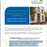 FiZ - Familie im Zentrum - SozialzentrumDie Erziehungsberatungsstelle bietet Familien am Dienstag, 16. März 2021 von 19:00 bis 21:00 Uhr einen online-Themenabend an. Aus der Reihe "Familienalltag in der Coronakrise" findet damit ein dritter Themenabend zur Unterstützung bei der Bewältigung der Corona-Krise statt. Imo Stührcke und Jürgen Schuba sprechen mit den Erziehenden über mögliche Ängste in der aktuellen Zeit. Eine Anmeldung ist erforderlich und bis zum 11.03.2021 bei der Erziehungsberatungsstelle, Tel. 05151/903-3535 oder erziehungsberatung@hameln-pyrmont.de (Sekretariat) möglich.
