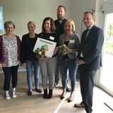 FiZ - Familie im Zentrum - SozialzentrumAm 22. Mai hat das Familienbüro in der Kita St-Nicolai im Feuergraben nun auch offiziell seine Türen geöffnet. Sehr erfreut über die neue Anlaufstelle für Eltern hielt Oberbürgermeister Claudio Griese die Eröffnungsrede und übergab das Türschild mit dem Titel "Familienbüro" und dem FiZ-Logo an die zuständige Ansprechpartnerin Alexandra Holz und die Kita-Leiterin Reinhild Schimanski.
