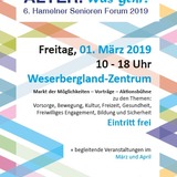 FiZ - Familie im Zentrum - SozialzentrumAm Freitag, 01. März 2019 findet von 10:00 bis 18:00 Uhr unter dem Titel "Alter.Was geht?" im Weserberglandzentrum in Hameln das 6. Senioren Forum statt. Veranstalter ist die Stadt Hameln, Abteilung Familie und Soziales. Neben einem Markt der Möglichkeiten und Vorträgen gibt es auch eine Aktionsbühne. Viele soziale Einrichtungen beteiligen sich mit Angeboten zu den Themen "Vorsorge, Bewegung, Kultur, Freizeit, Gesundheit, Freiwilliges Engagement, Bildung und Sicherheit". Begleitend zu der Veranstaltung am 01. März gibt es im März und April weitere Veranstaltungen für Hamelner Senioren.
