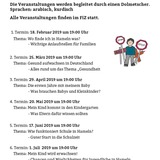 Seit nunmehr zwei Jahren ist montags um 19:00 Uhr regelmäßig Elternbildungstag im FiZ. Am 18. Februar startet die Bildungsreihe „FamilienLeben“ mit dem Vortrag "Aus zwei mach´drei" bereits in das dritte Jahr.