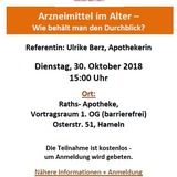 FiZ - Familie im Zentrum - SozialzentrumAm kommenden Dienstag, 30.Oktober um 15:00 Uhr findet in den Räumlichkeiten der Rathsapotheke, Osterstraße 51 ein Vortrag zum Thema Wechselwirkungen von Medikamenten. Apothekerin Ulrike Berz verrät, wie man bei einer Multimedikation mit Wechsel-und Nebenwirkungen umgehen kann. Die Veranstaltung wird vom Senioren-und Pflegestützpunkt in Kooperation mit der Rathsapotheke Hameln angeboten.
