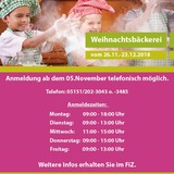 FiZ - Familie im Zentrum - SozialzentrumAb dem 05.November können sich Familien, Schulen, Kitas u.a. telefonisch im FiZ unter 05151/ 202-3043 oder 202-3485 Termine zum Keksebacken in der Hamelner Weihnachtsbäckerei sichern. Vom 26. November bis zum 23.Dezember dürfen Kinder -wie bereits in den letzten zwei Jahren- in Begleitung eines Erwachsenen kostenfrei in gemütlicher Atmosphäre mitten auf dem Hamelner Weihnachtsmarkt leckere Kekse backen. Möglich ist dies in der Zeit von Montag bis Samstag zwischen 10:00 bis 20:00 Uhr und sonntags von 11:00 bis 20:00 Uhr.