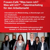 FiZ - Familie im Zentrum - SozialzentrumAm Donnerstag, 29. November, findet um 16:00 im Berufsinformationszentrum (BiZ) der Agentur für Arbeit ein Frauen-Café zum Thema "Talentmarketing für den Arbeitsmarkt" statt. Im Rahmen der Reihe "Donnerstags im BiZ" können Frauen sich an diesem Tag unter fachkundiger Begleitung u.a. mit ihrem Wiedereinstieg in den Beruf beschäftigen.