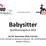 FiZ - Familie im Zentrum - SozialzentrumAm 24./25. November 2018 von 09:00 bis 16:00 Uhr bietet die AWO KV Hameln-Pyrmont im FiZ einen Qualifizierungskurs für Babysitter an. Eingeladen sind interessierte Jugendliche ab 14 Jahren, die gerne mit Babys und Kindern umgehen. Die Teilnahmegebühr beträgt 40€.