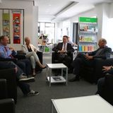 FiZ - Familie im Zentrum - SozialzentrumDer Bundespolitiker Jürgen Trittin informierte sich im Rahmen seines Hameln-Besuchs am 31.August auch über die Arbeit von "Familie im Zentrum". In Begleitung von Hamelns Oberbürgermeister Claudio Griese, Stadträtin Martina Kurth-Harms, dem Geschäftsführer der Reintjes GmbH, Klaus Deleroi sowie Sven Kornfeld als Vertreter der Grünen ließ er sich von FiZ-Leiter Bernd Himler das Eugen-Reintjes-Haus in der Osterstraße 46 zeigen. In diesem Rahmen erfuhr der Politiker einiges über die vielfältige, vernetzende und familienfördernde Arbeit im FiZ.