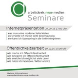 FiZ - Familie im Zentrum - SozialzentrumDer "Arbeitskreis Neue Medien" bietet am Dienstag, 27. September sowie am 19.Oktober je ein Seminar aus dem Bereich Öffentlichkeitsarbeit an. Angesprochen werden sollen mit den Veranstaltungen Einrichtungen/ Vereine oder Verbände aus dem nicht kommerziellen Bereich. Thema ist im Rahmen des ersten Seminares die "Internetpräsentation" einer sozialen Einrichtung.