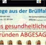 Die für morgen, den 20.02.2016, geplante Veranstaltung "Wege aus der Brüllfalle" im Gemeindehaus Afferde muss krankheitsbedingt leider ausfallen. Die Veranstalter bitten um Verständnis und hoffen bald einen Erstztermin ankündigen zu können.
