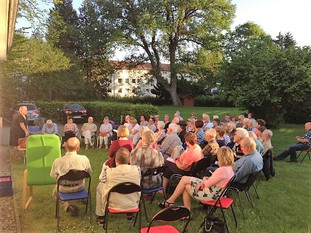 Wir hatten aber das große Glück, dass sich Carola Redeker, Rechtsanwältin und Notarin in Hameln, im Publikum befand, die im Befähigungskurs für Sterbebegleiter über dieses Thema schon referiert hatte. Bereitwillig übernahm sie die Rolle der Referentin und hat bravourös durch den Abend geführt, der kurzfristig bei schönstem Wetter nach draußen verlegt wurde. Eine gute Unterstützung waren die Beispiele, die die Palliativmedizinerin Frau Watzlaw-Schmidt einfließen ließ.
