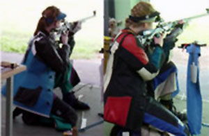 Am zweiten Tag der Deutschen Meisterschaften ging es für die Rohdener Juniorinnen Bianca Glinke in München im Kleinkaliber 3x20 weiter. Ihren ersten Auftritt hatte die Mannschaftskollegin Kai-Viktoria Schirmag – ebenfalls im KK 3x20. Für Bianca verlief der zweite Wettkampftag dann auch schon deutlich besser. Mit sehr guten 567 Ringen fand sie sich auf Rang vierzehn wieder. Im Liegendanschlag schoss sie 98 und 96 Ringe. Weiter ging es im Stehendanschlag. In der ersten Serie schoss sie mit 98 Ringen sogar die beste Zehnerserie aller Teilnehmerinnen. In der zweiten Zehnerserie fielen dann noch 92 Ringe. In der letzten Anschlagsart, dem Kniendanschlag, folgten noch 91 und 92 Ringe. Kollegin Kai-Viktoria Schirmag, eine Leihgabe vom SV Ohr, erzielte 528 (96/91/90/81/88/82) Ringe. Durch die jeweils schlechteren zweiten Serien jeder Anschlagsart reichte es zu Platz 108. Für beide Teilnehmerinnen geht es morgen in der Disziplin KK liegend 60 Schuss weiter. Ein Platz im vorderen Drittel wäre schon eine leichte Überraschung, da diese für beide Schützinnen nicht die Paradedisziplin ist. Foto: Bianca (links) und Kai-Viktoria (rechts) beim Kniendanschlag.
