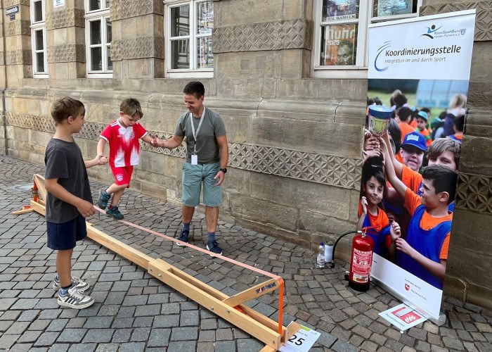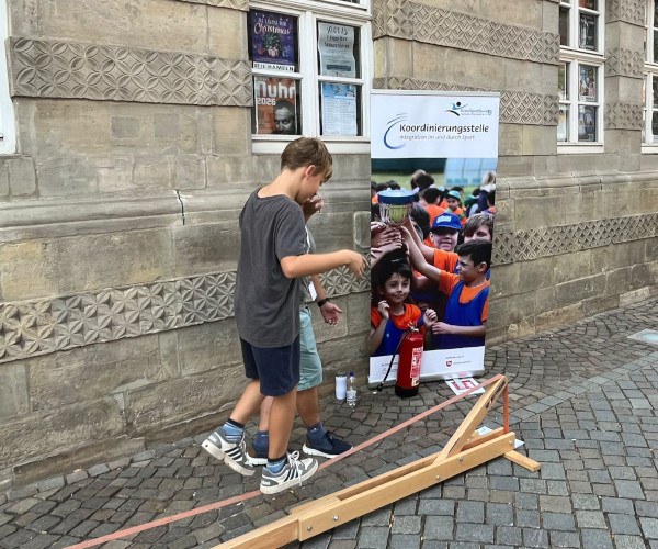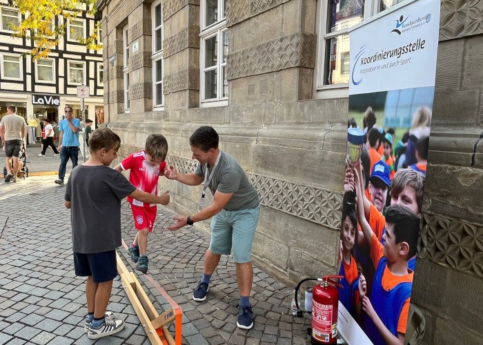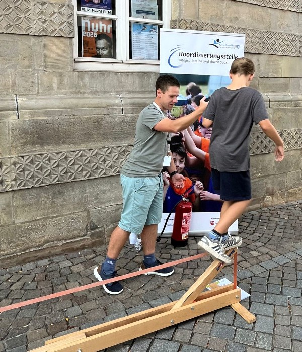 Der Landkreis Hameln-Pyrmont feierte gemeinsam mit Vereinen, Verbänden, Organisationen und vielen Engagierten den „Tag der Kulturen“. Auch der Kreissportbund Hameln-Pyrmont war mit der Koordinierungsstelle "Integration im und durch Sport" dabei: Sport verbindet Menschen – unabhängig von Herkunft, Sprache oder Kultur. Im Landkreis Hameln-Pyrmont leben Menschen aus unterschiedlichsten kulturellen Hintergründen zusammen, und genau diese Vielfalt wurde an diesem Tag gefeiert! Besucherinnen und Besucher konnten eine bunte Mischung aus Tanz, Musik, Sprache, kulinarischen Köstlichkeiten, traditionellen Bräuchen und kreativen Ideen erleben. Auch zahlreiche Vereine, Verbände und unterschiedliche Organisationen präsentierten ihre Arbeit und machten die Vielfalt im Landkreis sichtbar. Ein besonderes Highlight war die Verleihung des Gütesiegels „Guter Ganztag“, das bereits zum dritten Mal an Grundschulen im Landkreis verliehen wurde. Damit wird das Engagement für Chancengleichheit, gute Betreuung und eine starke Förderung von Kindern im Ganztag gewürdigt. Passend dazu wurde auch der Weltkindertag gefeiert – ein Tag, der daran erinnert, wie wichtig gleiche Chancen für alle Kinder sind. Zwischen 11:00 und 17:00 Uhr bot das Fest ein abwechslungsreiches Programm mit Bühnenauftritten , spannenden Seminaren, vielen Informationsständen, kreativen Mitmachaktionen und köstlichen internationalen Spezialitäten. Der Kreissportbund beteiligte sich mit einem an Kinder gerichtetem sportlichen Mitmachangebot. So wurde deutlich: Sport schafft Begegnungen, fördert Fairness und Zusammenhalt – und trägt so wesentlich dazu bei, Vielfalt im Landkreis Hameln-Pyrmont zu leben.