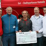 Kreissportbund Hameln Pyrmont - VerbandOrganisatoren, Kinder und Jugendliche begeistert / Staffelrennen: „Mensch besiegt Auto“ – und SSK spendet 1.500 Euro