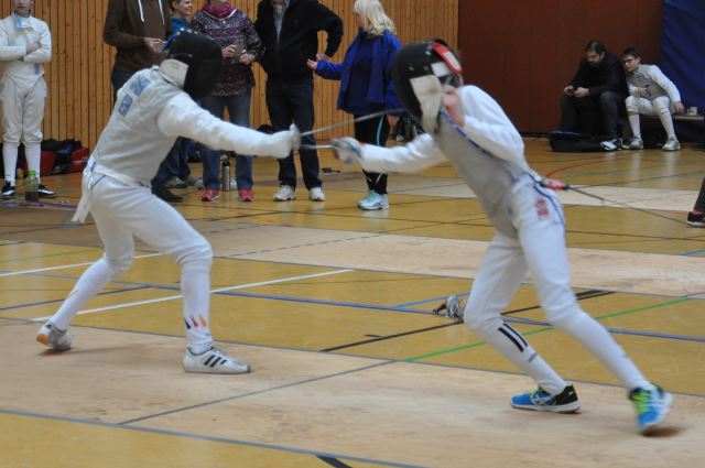 In der Vorrunde lief es Björn noch nach Plan und er kam mit nur einer Niederlage weiter. In der anschließenden Zwischenrunde kassierte er zwei knappe Niederlagen. Damit war er für Direktausscheidung nur an Platz 5 gesetzt und musste im Viertelfinale gegen den starken Ranglistendritten Noel Jahn aus Göttingen antreten. Dieses Gefecht entwickelte sich zu einem wahren Krimi. Noel ging früh in Führung und verteidigte sie lange, aber in der zweiten Hälfte des Gefechtes ging Björn erstmalig mit 8:7 in Führung. Noel konterte geschickt und lag kurze Zeit später wieder mit 9:8 vorne. Björn gelang aber der erneute Ausgleich, so dass der letzte Treffer entscheiden musste. Diesen setzte dann Noel nach einem schönen Angriff. „Diese Niederlage ärgert mich schon sehr.“, sagte Björn anschließend, „Zum wiederholten Male bin ich jetzt im Viertelfinale gescheitert. Aber der fünfte Platz spornt mich jetzt noch mehr an, das nächste Mal auf dem Treppchen zu landen“.