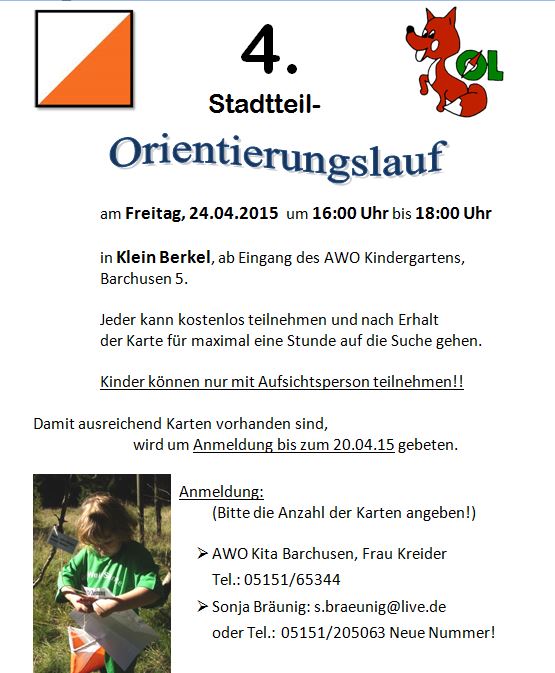 4. Stadtteil-Orientierungslauf am Fr., 24.04. in Klein Berkel