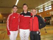 Aber zum Anfang: Bei den Landesmeisterschaften der Florettfechter gingen Lisa Holste bei den Damen und Vassili Golod, Malte Magerkruth und Axel Klages bei den Herren an den Start. Für alle Herren ging das Turnier sehr gut los. Nach der Vorrunde waren Malte und Vassili indexgleich an Platz 1. gesetzt und Axel auf Platz 4. Während Malte und Vassili mit 2 Siegen direkt ins Viertelfinale der besten 8 einziehen konnten, musste Axel den Umweg über den Hoffnungslauf nehmen. In seinem Viertelfinale traf er auf den späteren Landesmeister Miles Pieles aus Hildesheim. In einem spannenden Gefecht, in dem es Axel immer wieder schaffte einen Rückstand zu egalisieren, verlor er zum Schluss knapp mit 15:12. Das bedeutete für ihn am Ende Platz 5, mit dem er nicht unzufrieden war. Malte und Vassili machten es in ihren Viertelfinalgefechten besser und gewannen nach ebenfalls sehr spannenden Gefechten. Damit standen beide im Halbfinale. Und dort schlug dann der Halbfinal-Fluch zu. Malte verlor, nach dem er zwischenzeitlich einen 6 Treffer-Rückstand aufgeholte hatte, gegen Mieles mit 15:11. Vassili musste gegen den starken Nachwuchskaderfechter Lennart Reitz aus Hannover antreten und verlor nach einem langen offenen Gefecht unglücklich mit 15:12. Damit belegten Malte und Vassili beiden den 3. Platz.
