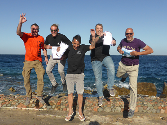 "Am nächsten Tag hatten wir das Glück", meint Jens,"dass die Freiwasserprüfungen an unserer Basis stattgefunden haben, wir hatten also etwas Heimvorteil. Jeder musste zwei Lehrproben im Meer absolvieren, meist eine aus dem OWD und eine aus einem weiterführenden Kurs. Außerdem musste noch die Rescueübung demonstriert werden, bevor auch dieser Tag überstanden war. Danach konnte dann aber direkt gefeiert werden, was wir auch ausgiebig getan haben."