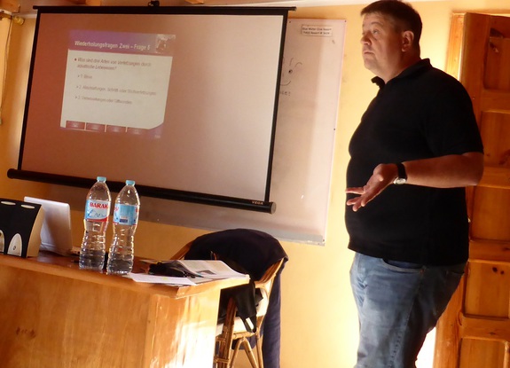 Damit ist der Tag eigentlich schon gut ausgefüllt. "Aber es sollte sich ja abends niemand langweilen. Also haben wir dann jeweils noch eine Hausaufgabe mitbekommen, meist das Vorbereiten einer Lehrprobe.D.h. am nächsten Tag musste dann entweder ein vorgegebenes Theoriethema anschaulich vermittelt werden oder eine praktische Übung musste mit einer Gruppe von 'Tauchschülern' unter Wasser absolviert werden, wobei die 'Schüler', in dem Fall andere Kandidaten, von der Kursleitung bestimmte Fehler bekommen haben, die sie machen mussten. Wurden diese Fehler vom Kandidaten nicht entdeckt, gab es Punktabzug.."