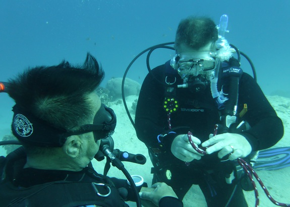 Anschließend folgen dann der eigentliche IDC, der in der Regel neun Tage dauert. In diesen Tagen wird nicht nur sehr umfangreiches theoretisches KnowHow vermittelt, es gibt auch zahlreiche Workshops im Wasser wie "Bondage für Anfänger", bei dem die wichtigsten Knoten geübt werden, d