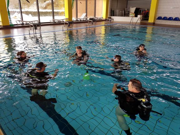 Durch Krankheit und eine Terminverschiebung etwas ausgedünnt hatten die verbliebenen Teilnehmer umso mehr Zeit, erste Erfahrungen mit dem Tauchgerät zu sammeln. Nach einer kurzen Einführung ging es auch gleich los und wir hatten gemeinsam viel Spaß.