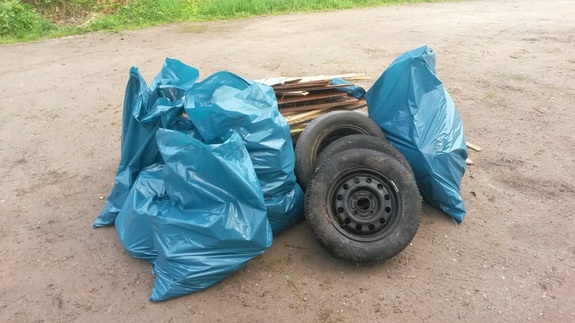Allein an dem Teich, für den die Divecrew heute verantwortlich war, hatten sich schon nach wenigen Stunden 11 zumeist prall gefüllte Säcke mit Müll, 5 Autoreifen, fast 20 Farbeimer, teilweise noch gefüllt, und Berge von Fußbodenbelägen, Rigipsplatten und sonstigem Bauschutt angesammelt.