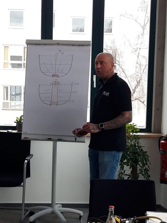 Kolben- oder Membrangesteuert, Kompensiert oder nicht, balanciert oder unbalanciert? Was steckt hinter diesen Begriffen, was sind die jeweiligen Vor- und Nachteile? Damit ging es schon einmal los auf an diesem Sonntag. Patrick lieferte die wichtigsten Informationen gut verständlich, mit viel Kompetenz und es gelang ihm, das Thema sehr interessant und humorvoll anzupacken.