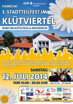 3. Stadtteilfest im Klütviertel am Samstag, den 12. Juli, von 14 bis 20:30 Uhr. Bei diesem Fest zwischen Klütschule und Kirchengemeinde Zum Heiligen Kreuz wird wieder jede Menge los sein ...
