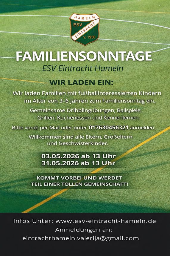 ...für Familien mit fußballinteressierten Kindern von 3 - 6 Jahren am 3. und 31. Mai 2026.