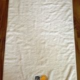 Das Duschtuch ist weiß und ist 70 x 130 cm groß. Das DTH-Logo ist hochwertig aufgestickt.