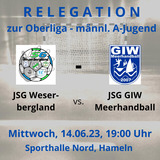 JSG Weserbergland - HandballUm 19 Uhr trifft die neuformierte männliche A-Jugend in der Halle Nord auf die JSG GIW Meerhandball. Der Sieger der Partie ist sicher in der Oberliga dabei, der Verlierer muss den Umweg über die zweite Runde in Kauf nehmen! Die A-Jugend freut sich über reichlich Unterstützung von den Rängen.