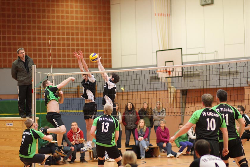 Im ersten Spiel gegen TB Stöcken haben wir einen Blitzstart erwischt und mit tollen Aufschlägen sowie sehr gutem Block erarbeiteten wir uns einen großen Vorsprung (14:4, 19:8) und gewannen den Satz zu 12. Beflügelt vom ersten Satz starteten wir im 2. Satz. Konzentriert und konsequent nutzten wir die Fehler des Gegners. Der Satz verlief genauso. Wir machten kaum Fehler und der Gegner fand keine Mittel um unsere Angriffe zu stoppen. Wir gewannen zu 17. Es sollte aber noch Mal spannend werden. Im dritten Satz haben wir unsere Linie verloren und sehr schnell meldeten sich die Gäste zurück. Einige technische Fehler auf unserer Seite brachten die Mannschaft aus der Fassung und wir verloren zu 18. Im vierten Satz spielten zwei gleichstarke Mannschaften und bis zum Stand 14:14 war das Spiel total ausgeglichen. Dann schlug Fabian Wolf eine kleine Aufgabenserie. Wir konnten uns auf 4 Punkte absetzten und konnten den Satz zu 19 und das ganze Spiel 3:1 gewinnen.