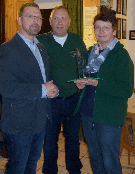 Matthias Glinke mit 58 Ringen. Dann enthüllte Sattler den "neuen" Pokal aus Glas, welcher neben dem Schriftzug des Spenders auch 3 Sterne für die Ortschaften Rohden, Segelhorst und Welsede enthält. Angefertigt nach dem Entwurf des Ortsbürgermeisters, ein echtes Unikat. Mit 59 von 60 Ringen konnte Rohdens Damenleiterin Angelika Stiebler den Pokal aus den Händen von Sven Sattler übernehmen.
