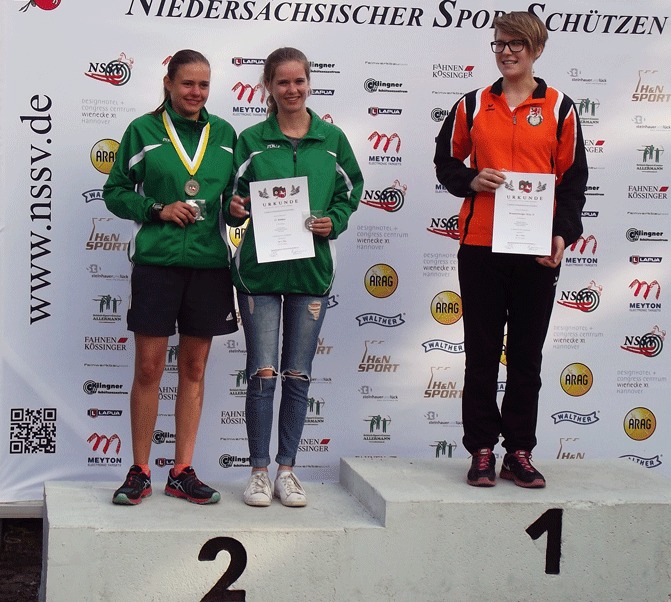 Am letzten Wettkampftag der Landesverbandsmeisterschaften 2017 im Sportschießen in Hannover brachte nochmals Silber und Bronze für die Rohdener Juniorinnen mit dem Kleinkalibergewehr im Liegendkampf. Für die Mannschaft schossen Lea Wichmann, Dunja Desiree Pluschke und Nina Kruse. Mit 1701 Ringe kam das Team hinter der Braunschweiger SGes II (1731 Ringe) ins Ziel. Zehn Ringe dahinter SchV Wolterdingen.