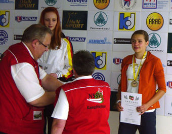 Bianca und Tobias wurden fast zeitgleich fertig, während Lea die Zeit bis kurz vor Ablauf ausnutzte. Für sie war es die erste Landesmeisterschaft in dieser Disziplin, die sie auch erst seit wenigen Monaten schießt. Danach begann die lange Zeit des Wartens. Die Wertung der Scheiben erfolgt hierbei noch manuell, nicht so wie in vielen anderen Schießwettbewerben elektronisch. Um 18.50 Uhr stand das Endergebnis fest. Bianca Glinke holte sich zum vierten Mal in Folge den Landesmeistertitel mit 387 Ringen bei den Junioren. Lea Wichmann freute sich riesig über ihre 366 Ringen und die Bronzemedaille. Tobias Glinke reichten dann noch 356 Ringe für den fünften Platz bei den Junioren. Jugendleiter Uwe Hoff, sowie die weiteren Vorstandsmitglieder Hannelore und Wolfgang Hanschke und Joachim Meyer, beglückwünschte dann vor Ort noch dieses junge Team zum zweiten Platz in der offenen Mannschaftswertung. Nur die erste Mannschaft der Neuenkirchener war besser. Sollte es bei den Limitringzahlen zur Deutschen Meisterschaft aus dem Vorjahr bleiben, dann fahren sowohl Bianca, als auch Lea zur Deutschen Meisterschaft nach München. Foto: Bianca Glinke und Lea Wichmann bei der Siegerehrung