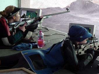 Foto: Kai-Viktoria Schirmag (rote/weiße Jacke) und Bianca Glinke (blaue Jacke) beim Liegendanschlag.