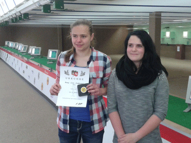 Von den Rohdener Jungschützen schafften dies Jaqueline Thomas (Foto rechts) und Lea Wichmann (Foto links). In Hannover mussten die beiden dann einen Durchgang vormittags und einen Durchgang nachmittags schießen. Mit 176 und 171 Ringen schoss sich Jaqueline Thomas auf den achten Platz bei den Schülern. Besser lief es bei Lea Wichmann, die nach dem Vorkampf Dritte war. Im ersten Durchgang schoss Lea Wichmann 383 Ringe und war damit Zweite. In Führung nach dem ersten Durchgang Lea Schäfer mit 390 Ringen aus dem Kreis Göttingen. Im zweiten Durchgang legte die Tabellenführerin dann 383 Ringen hin. Somit griff die Rohdenerin Lea Wichmann nochmals an - und sie schoss ihre beste Wettkampfleistung – 387 Ringe. Damit beendete sie ihren Wettkampf mit drei Ringe weniger auf die Führende als Zweite der Jugendrangliste Luftgewehr Jahrgang 1998. Ein toller Erfolg für viel Trainingsfleiß.