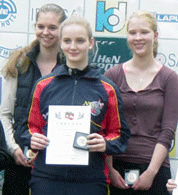 Doch diese Ergebnisse zählten in der Hauptsache nur für das Mannschaftsergebnis. Die besten acht Juniorinnen mussten dann nochmals in einem Finale den Landesmeistertitel ausschießen. Die Rohdener Sportleitung hatte mit Biancas Finalteilnahme gerechnet. Die Überraschung aus Rohdener Sicht war die Finalteilnahme von Kai-Viktoria Schirmag. In den letzten Wochen hatte sie sich zwar nach einer leichten „Durststrecke“ gesteigert, aber an einer Finalteilnahme konnte keiner vorher so richtig dran glauben. Doch dieser achte Platz aus dem Vorkampf sollte noch nicht alles sein. Während Bianca Glinke das Finale nach der neuen ISSF-Regel, wobei alle acht Teilnehmerinnen wieder bei null beginnen und nach und nach eine Teilnehmerin ausscheidet, das Feld beherrschte und mit 206,1 Ringen nach Zehntelwertung den Landesmeistertitel holte, sicherte sich zur Überraschung aller Kai-Viktoria Schirmag mit 177,0 Ringe den dritten Platz – eine nicht erwartete Bronzemedaille für die aus Ohr stammende und für Rohden schießende Juniorin.