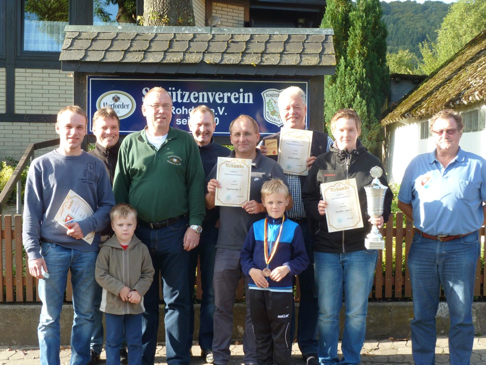 "Ich freue mich, dass wieder einmal so viele Mitglieder der örtlichen Vereine den Weg auf den Schießstand in Rohden gefunden haben" freute sich Klaus Römmer nach der Siegerehrung und lud zusammen mit Joachim Knauer wieder alle Mitglieder und Freunde für das kommenden Jahr ein, wenn dann zum zehnten Mal die beste Mannschaft gesucht wird, um mit dem Wanderpokal in Händen das Vereinsheim des Schützenverein Rohden zu verlassen.Text: Klaus Römmer.