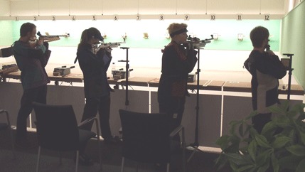 Mit der Luftpistole blieb die Mannschaft des SV Rohden auch weiterhin auf dem fünften Rang mit 3.027 Ringen. Es siegte die SGi Grohnde I (3.317) vor der SGi Hameln I (3.138) und der SGi Grohnde II (3.099 Ringe). Vor dem Rohdener Team kam noch die SGi Grohnde II. (3.080 Ringe /4.Platz) ins Ziel. In der Einzelwertung der Jugend/Junioren siegte Lea Wichmann (SV Rohden) mit 910 Ringen. In der offenen Einzelwertung der 21-55jährigen belegte Matthias Glinke hinter Jörn Nachtigall (Sgi Grohnde I / 1.130) und Aline Halbrock (SGi Grohnde I / 1.110) den dritten Platz mit 1.084 Ringen. Marian Friedrich wurde Achter mit 1.033 Ringen. Bei den Senioren setzte sich Ronald Grams (SGi Hameln I / 1.052) ggü. Mannschaftskollegen Thomas Kemper (1.020) durch. Foto von links: Marian Friedrich, Lea Wichmann, Nina Kruse, Dominick Bruns.