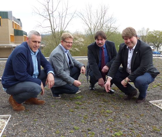 Außerdem sieht es auch noch schön aus und motiviert Schülerrinnen und Schüler sich mehr auf die Unterrichtshalte zu konzentrieren, als wenn sie nur auf ein monotones Kiesdach sehen würden. Schulleiter Johannes Stolle bedankt sich beim Landrat und freut sich über eine baulich und ökologisch gelungene Dachsanierung. > Quelle