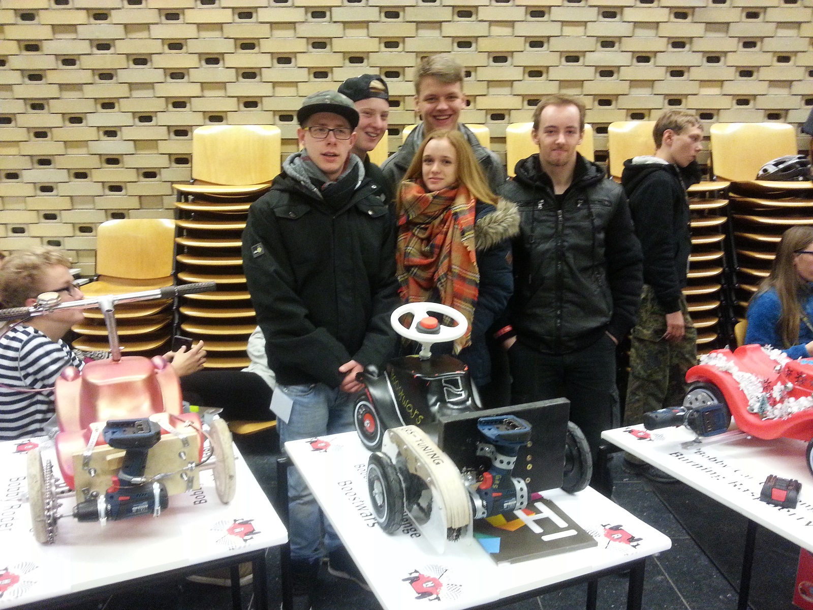 Im Rahmen der Aktion „November der Wissenschaft“ nahmen am Sonntag, dem 20. November 2016, Schülerinnen und Schüler der Eugen-Reintjes-Schule am Bobby-Car-Rennen der Hochschule Hannover auf dem Campus Linden teil. Unter der Organisation des stellvertretenden Schulleiters der ERS, Jaroslaw Dylong, und mit Hilfe des Fachpraxislehrers für Metalltechnik, Karl-Heinz Müller, tunten die Jugendlichen der einjährigen Berufsfachschule für Bautechnik das bekannte Kinderrutschauto zu einem elektrischen High-Speed-Mobil. Die Bobby-Cars sowie für den Umbau notwendige Akkuschrauber wurden von der HSH gestellt. Der Fokus lag dabei nicht nur auf Geschwindigkeit, sondern auch auf Optik und Kreativität der „Minirennautos“.