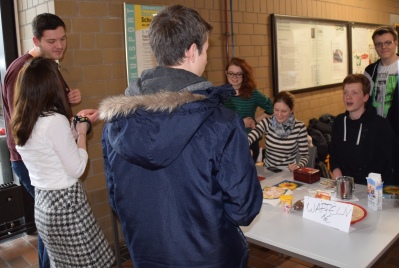 Schülerinnen und Schüler boten den Gästen selbstgebackene Waffeln an.