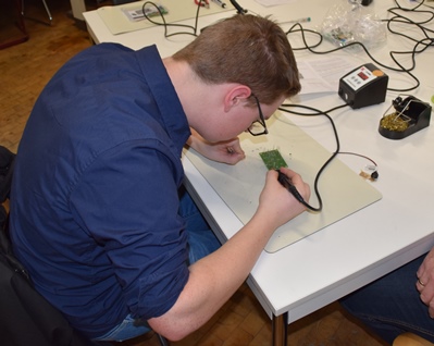 Wer Lust, Zeit und Mut mitbrachte, stellte einen elektronischen Würfel her und konnte gleichzeitig seine Geschicke beim Löten testen. Der Würfel kann natürlich nun bei heimischen Spielen eingesetzt werden.