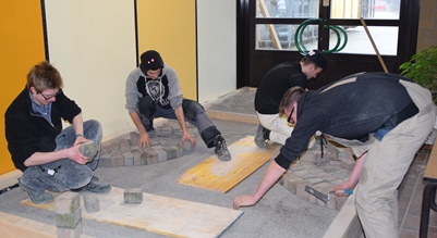 Die Jugendlichen aus der Berufsvorbereitung zeigten ihr Können bei unterschiedlichen Pflasterarbeiten.