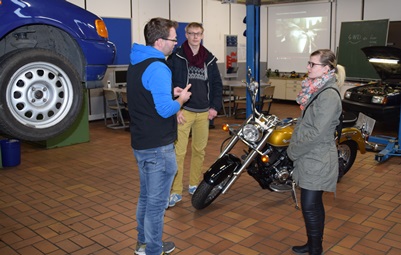 Interessierte zukünftige Auszubildende erkundigen sich nach Möglichkeiten der Schwerpunktbildung im KFZ-Bereich.
