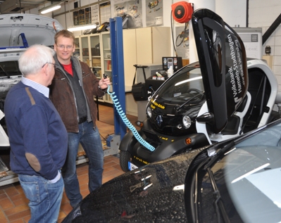 Der gerade erst beschaffte Hybrid-LKW animierte die Besucher/innen zu anregenden Gesprächen. Ab dem kommenden Schuljahr wird die ERS im Rahmen der KFZ-Mechatronik im Schwerpunkt System- und Hochvolttechnik ausbilden. Die Lehrkräfte sind qualifiziert, die Ausstattung ist vorbildlich und vollständig - jetzt fehlen nur noch die zu qualifizierenden Schülerinnen und Schüler...