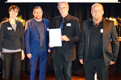 Die hervorragende geleistete Arbeit der Eugen-Reintjes-Schule in Hameln, die Motivation und Qualifikation der Lehrkräfte hat die Jury überzeugt: Jörg Gabriel überreicht die Urkunde zur Zertifizierung als „Filmschule Follower“ an die Delegation der Eugen-Reintjes-Schule. In festlichen Anlass in der Bundesakademie für kulturelle Bildung in Wolfenbüttel betont er, dass er von der außergewöhnlichen technischen Ausstattung und der Qualität der Arbeit positiv überrascht gewesen sei.