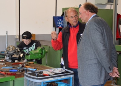 Am 25. April 2017 besuchte der FDP-Politiker, Klaus-Peter Wennemann, die Eugen-Reintjes-Schule. In dem Gespräch mit dem Schulleiter Johannes Stolle wird deutlich, welche beruflichen und politischen Erfahrungen der Politiker aufzuzeigen hat. Sein besonderes Interesse gilt der beruflichen Bildung. Herr Wennemann konnte sich davon überzeugen, dass sowohl berufliche Bildung als auch schulische Qualifizierung von der Berufsvorbereitung bis zum Abitur in der Eugen-Reintjes-Schule groß geschrieben wird. Auf einem Rundgang durch einige ausgewählte Werkstätten und Unterrichtsräume erlebte der Vertreter der FDP realistischen, zukunfts- und handlungsorientierten Unterricht. In kurzen Gesprächen mit Lehrkräften erkundigte er sich über Methoden, Medien und zukunftsorientierte Ausbildung. Schülerinnen und Schülern sprach er Mut und Zuversicht, bei dem von ihnen gewählten Beruf, zu. Er motivierte sie, auf ihr Bauchgefühl bei der Berufswahl zu hören, auch wenn die Aussichten zurzeit nicht so gut seien. Herr Wennemann war von der Art der Ausbildung in dieser Schule beeindruckt. Der von ihm wahrgenommene Unterricht zeigte motivierte Lehrkräfte, die mit ihrem Wissen und Können in ihrer Zielgruppe Fach-, Human-, Methoden-, und Lernkompetenz fördern. Das Miteinanderlernen in Gruppen, durch die Lehrkraft als Moderator, weist deutlich auf das zukünftige Arbeitsleben mit ihrer Teamarbeit hin. Herr Wennemann erkundigte sich nach dem Stand der Förderung Jugendlicher Geflüchteter sowie nach der Entwicklung bezüglich der Inklusion. Die Beschulung der Jugendlichen Geflüchteten weist einen hohen Anteil an Deutschunterricht auf, der durch Fachbegriffe in unterschiedlichen Berufsfeldern im fachpraktischen Unterrichts trainiert und verstärkt wird. Dass die Eugen-Reintjes-Schule auf Inklusionsschülerinnen und -schüler eingestellt ist, konnte Herr Wenneman bereits den baulichen Maßnahmen durch den Schulträger (Landkreis Hamel-Pyrmont) wahrnehmen. Das gute Verhältnis zum Schulträger sah Herrn Wenneman auch darin bestätigt, dass in der Schule ein modernes Lichtkonzept umgesetzt wurde, eine zukunftsträchtige Heizungsanlage erhalten hat und die Dachflächen zu einer architektonisch-attraktiven und ökologisch wirksamen Dachfläche saniert wurden. Dass diese Schule dringend einen leistungsfähigen digitalen Netzanschluss in Form eines Glasfaserkabels benötigt, um gerade im gewerblich-technischen und Informatik-Bereich zukunftsweisend unterrichten zu können, um nicht den Anschluss zu verpassen, erkannte der heimische Politiker sofort.